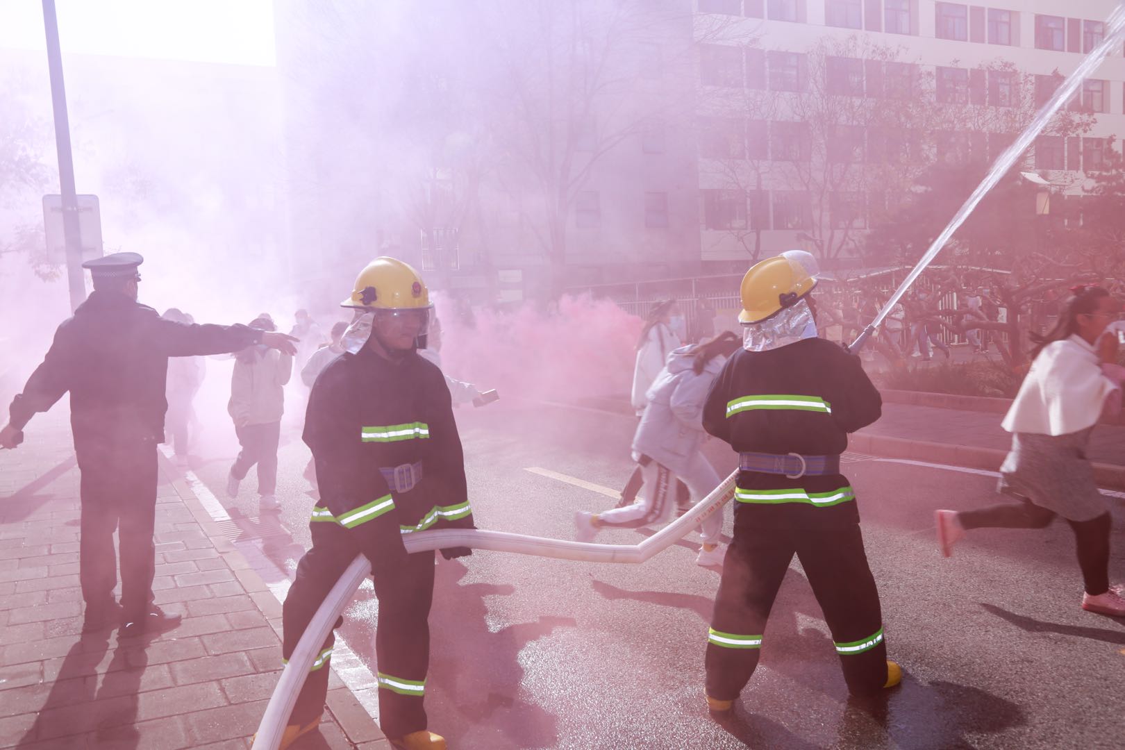 为进一步提高我校学生火灾自救逃生能力,在“119全国消防日”,学校于2020年11月9日组织开展了学生宿舍消防疏散演习。学校党委常委白莽、大兴区黄村消防救援支队清源路中队中队长邓春雷、大兴区黄村镇派出所副所长刘玉贵等领导亲临现场观摩指导。学校保卫处班子成员、后勤处负责人、部分二级学院党委副书记、辅导员及2020级新生参加了演习活动,活动由保卫处副处长张永亮指挥。