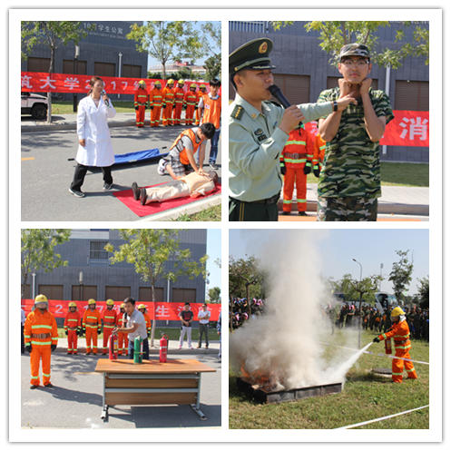 校医院、大型消防支队、保卫处专业人员分别讲授消防安全知识、示范消防安全技巧