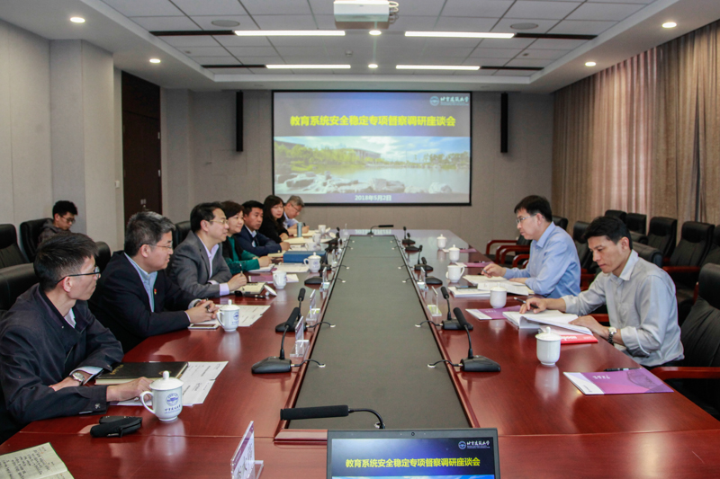 5月2日下午,北京市教委基教一处副处长陈德时、主任科员王昱人及大兴区副区长方健、区教委主任王学军一行莅临我校大兴校区,就教育系统安全稳定工作开展专项督查。督查汇报会前,党委副书记吕晨飞、党委常委、党政办公室主任白莽与大兴区副区长方健一行就近期高校安全稳定工作进行交流,党政办、保卫处、宣传部、学工部、网信中心、教师工作部等职能部门负责人出席督查汇报会。