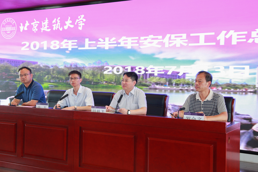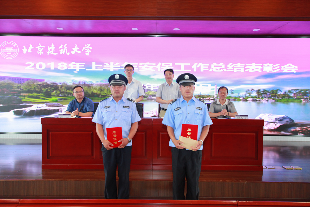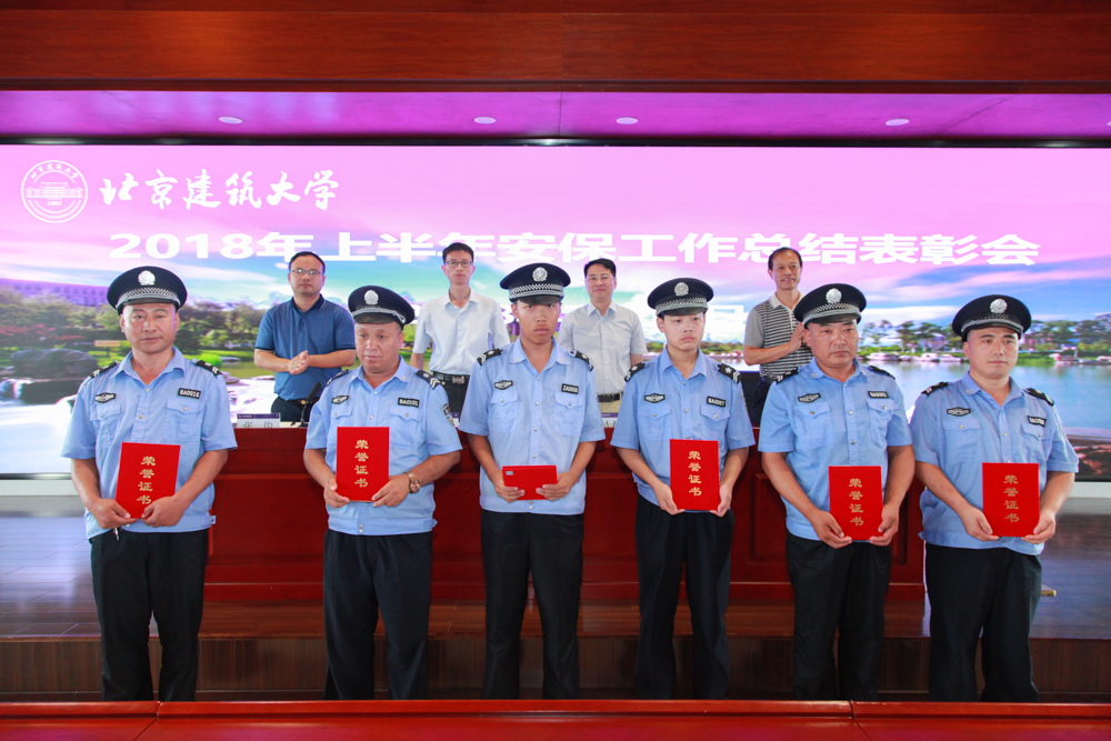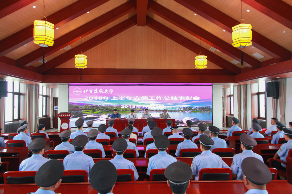 7月13日下午,学校在大兴校区综合楼报告厅召开2018年上半年安保工作总结表彰大会,党委副书记吕晨飞、保卫处处长牛磊、党政办公室副主任张俊、保卫处干部、保安公司领导、驻校保安等六十余人参会,会议由保卫处副处长罗会文主持。