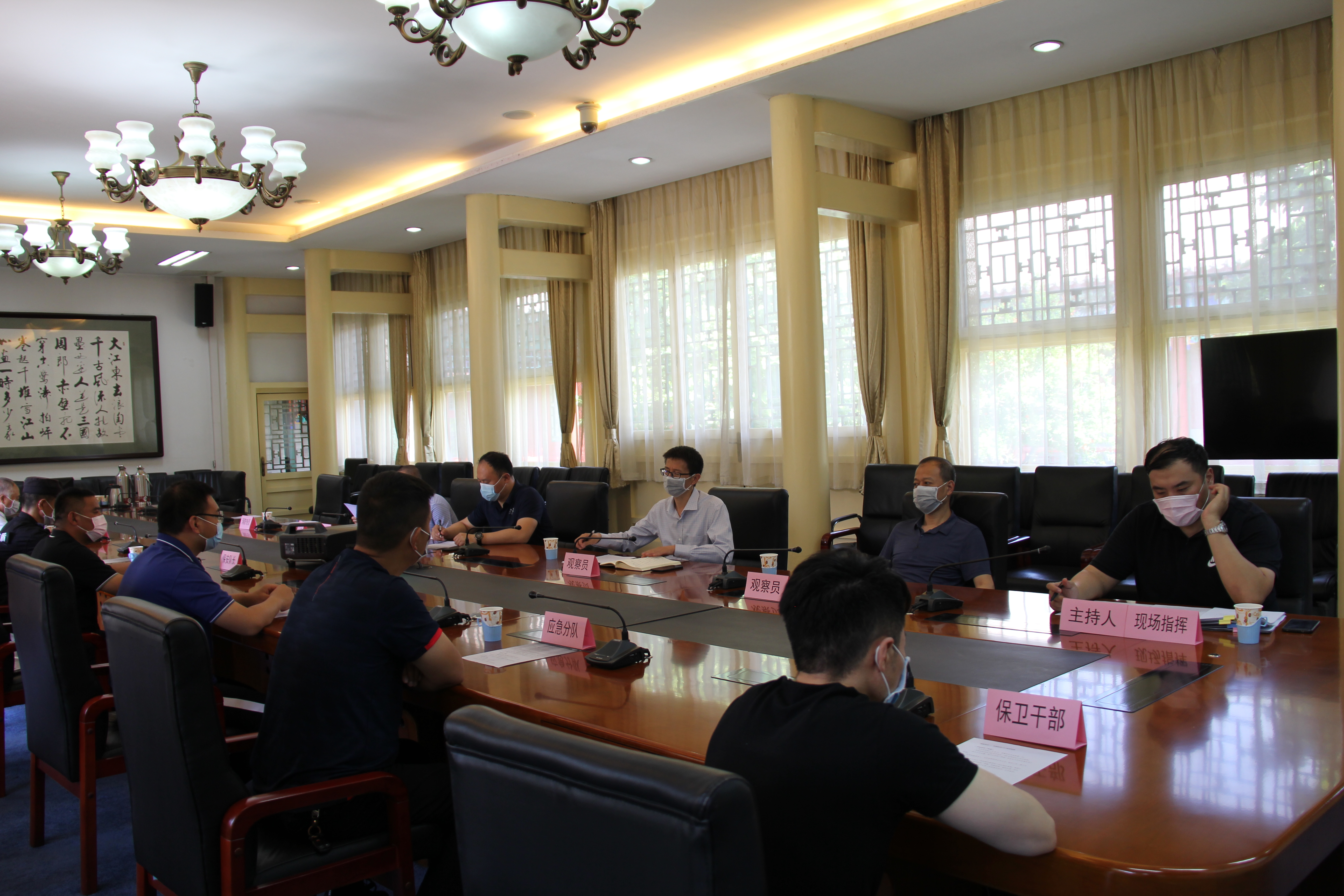 6月2日,学校针对毕业生返校安保工作,组织全体保卫干部及两校区保安队骨干开展桌面推演。保卫处处长牛磊、副处长罗会文以观察员身份参加推演,桌面推演由张永亮主持。