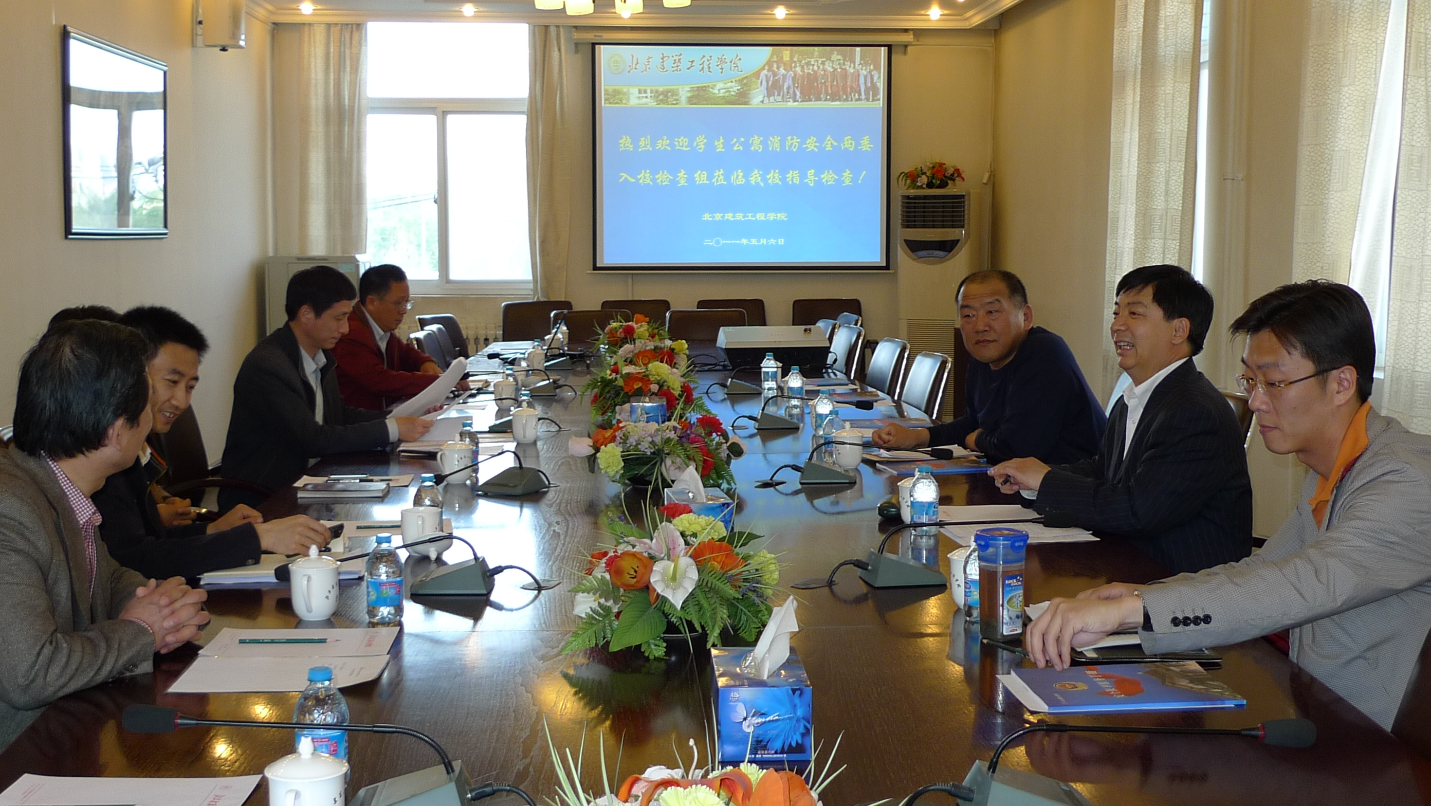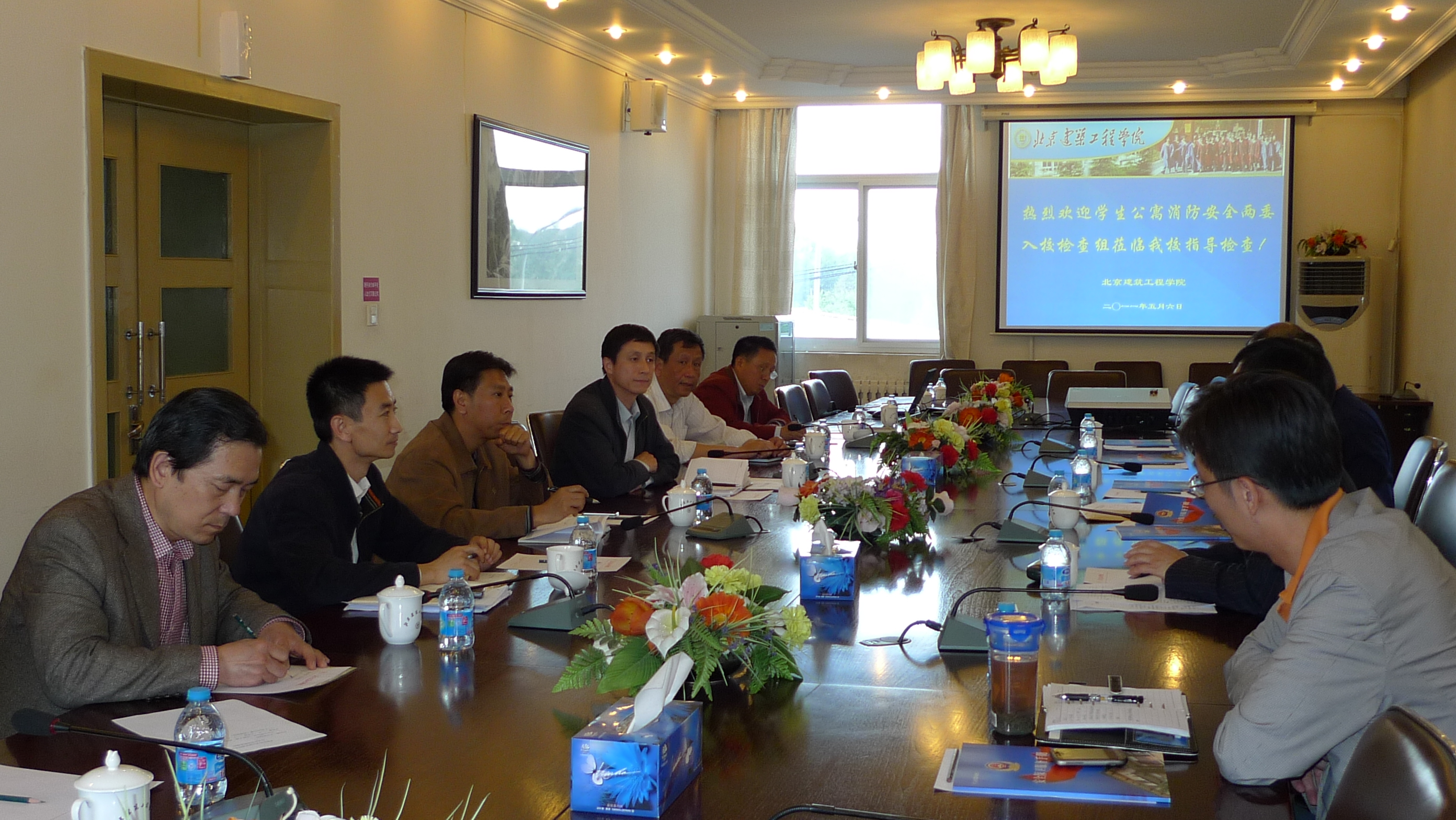 王书记对检查组的到来表示欢迎,并向检查组汇报了我校学生公寓消防安全方面的情况。王书记说,我校党委和行政历来高度重视安全稳定工作,并将学生公寓消防安全作为工作的重中之重。一是按照市委教工委和市教委的安排,学校于5月5日下午召开紧急会议及时传达了两委专项会议的有关要求,并组建了由学校主管领导为组长,校办、学工、保卫等部门负责人为成员的学校学生公寓消防安全专项工作组,于5月5日下午开始自查工作;二是学校建立了学生公寓消防安全的工作制度,通过签订责任书、制定消防疏散预案、出台住宿学生教育和管理的文件等,建立起一整套行之有效的学生公寓消防安全管理制度;三是以大一年级开设的《大学生安全知识与防范技能》课为载体,每年分别在学校本部和大兴校区举行消防疏散演练,同时每年两次对学生公寓管理员开展消防安全知识教育,进一步提高公寓管理员和住宿学生的安全防范意识;四是学校建立了学生公寓安全检查的常态机制,由学生处牵头,保卫处、基建处、资产处、后勤集团及各二级学院负责人参与,每个月对学生公寓开展安全检查,及时消除各类隐患。王书记强调,通过自查,一是发现目前学校校园内存在几处彩钢板建筑,二是部分学生的消防安全意识不够强,三是部分消防设施有待进一步完善。