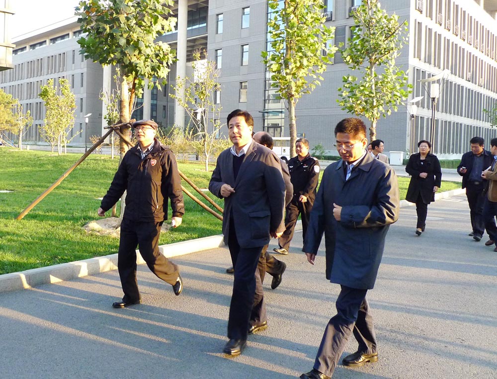 李中水委员一行认真听取汇报,对我校大兴校区的安全保卫工作给予充分肯定,并率领调研组到大兴校区南北门、西围墙等处实地查看安全隐患。李中水委员嘱咐随行人员要进一步加强协调沟通,及时解决这些隐患,为北京建筑工程学院大兴校区的安全、和谐和可持续发展创造良好的环境。李中水委员一行还到教工俱乐部查看我校大兴校区沙盘,了解我校的规划发展情况。