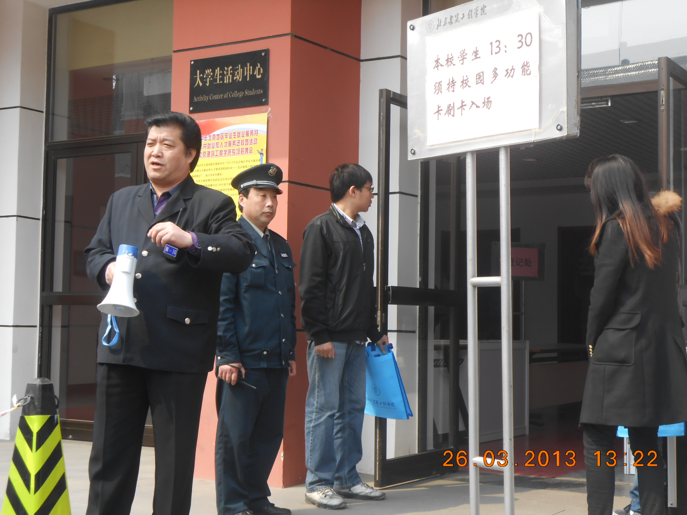 为给现场的用人单位和毕业生营造一个平安、舒适的和谐环境,保卫处根据学校部署,结合实际情况,制定了详细的安全保障预案。提前两天清理门前车辆,并在当日对会场及周围环境进行一次全面的安全检查,组织入场秩序,维护现场环境,保证了此次双选会的顺利举行。