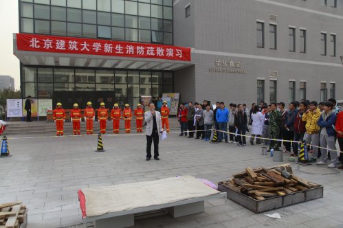为切实加强校园消防安全工作,强化广大师生的消防安全意识,提高师生抵御火灾和逃生自救能力,在创建“平安校园”的过程中竭力筑牢校园消防安全“防火墙”,11月5日下午14时,我校在大兴校区食堂北广场举办2013级新生消防疏散演习。