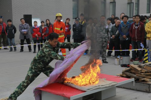 保卫处车胜利老师表演灭火毯扑救“火床”