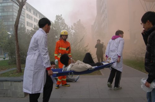 演习过程中,得到了大兴校区管委会、宣传部、学工部、医务室、新宇物业和同学们的大力支持和全力配合。校医务室贾瑞珍大夫及校红十字分会的同志们,为同学讲授并示范了紧急疏散逃生过程中的注意事项及火灾伤情的自救、互救的知识与技能;保卫处干部车胜利老师为在师生们讲解了使用干粉灭火器的注意事项并进行了灭火毯灭火的演示;学工部副部长冯永龙老师向同学们详解了学生公寓的安全管理规定并强调了“平安校园”创建工作的重要性;保卫部部长于志洋对本次演习进行了点评,希望同学们有意识培养自己抗击突发事件的应变能力,同时充分肯定了对于参加本次消防演习的学校各个职能部门,过程井然有序,达到了消防演习导演组的预设目的。