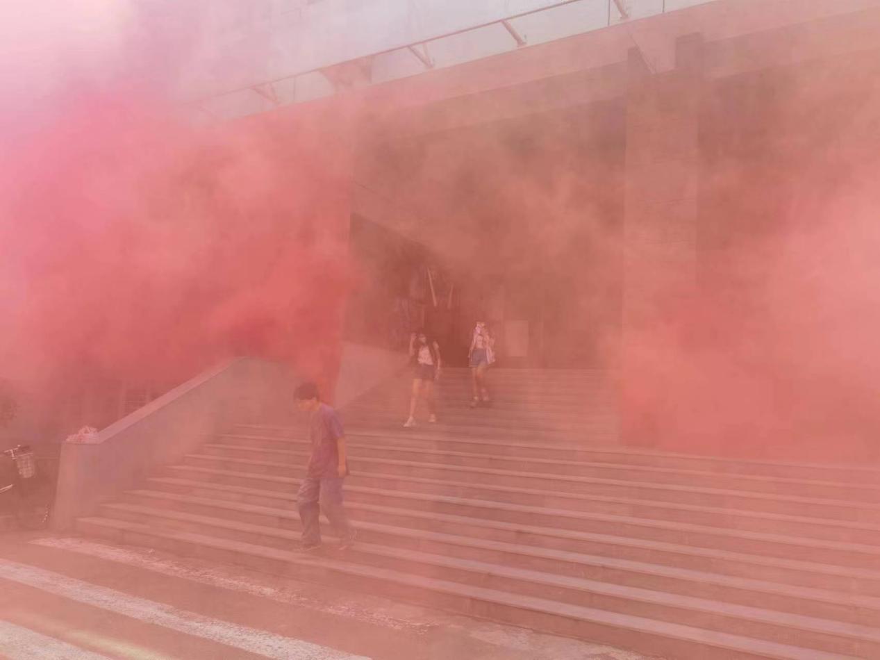 按照演练预设场景,11时45分,建筑学院所在老图书馆一层厕所部位因电线老化引发火灾,顿时浓烟滚滚,学校中控室接警后,立即报告保卫处,第一时间启动应急预案,并通知微型消防站人员奔赴火灾现场,同时广播告知险情,命令紧急疏散。图书馆师生听到广播后进行紧急疏散,在各层疏散引导人员的指挥下,按规定分两列有序疏散,一列靠楼梯左边行走,另一列靠右边行走,用手帕或毛巾捂住口鼻,弯腰行走撤离到楼下的空旷地带,并及时清点人数。最后,微消队员检查各楼层,确认无人掉队后立即撤离至集结地待命。