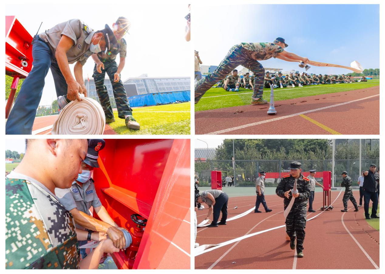 本次演练共分为两个部分,第一部分为疏散逃生,第二部分为消防救援技能实训。实训又分为五个环节,即“消防水龙带真出水”“灭火器灭真火”“灭火毯会灭火”“消防栓会使用”“单兵消防装备会穿戴”。