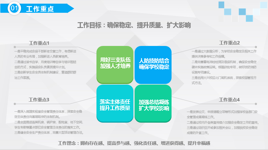 此次会议全面深入总结了过去一年的工作,分析了经验教训,凝练提升了工作规律,同时,对下一年的工作进行了全面而又重点突出的工作部署。保卫处将以落实安全稳定主体责任,推进从严治党主体责任向基层延伸为带动,指引工作实践,不断提升工作水平。