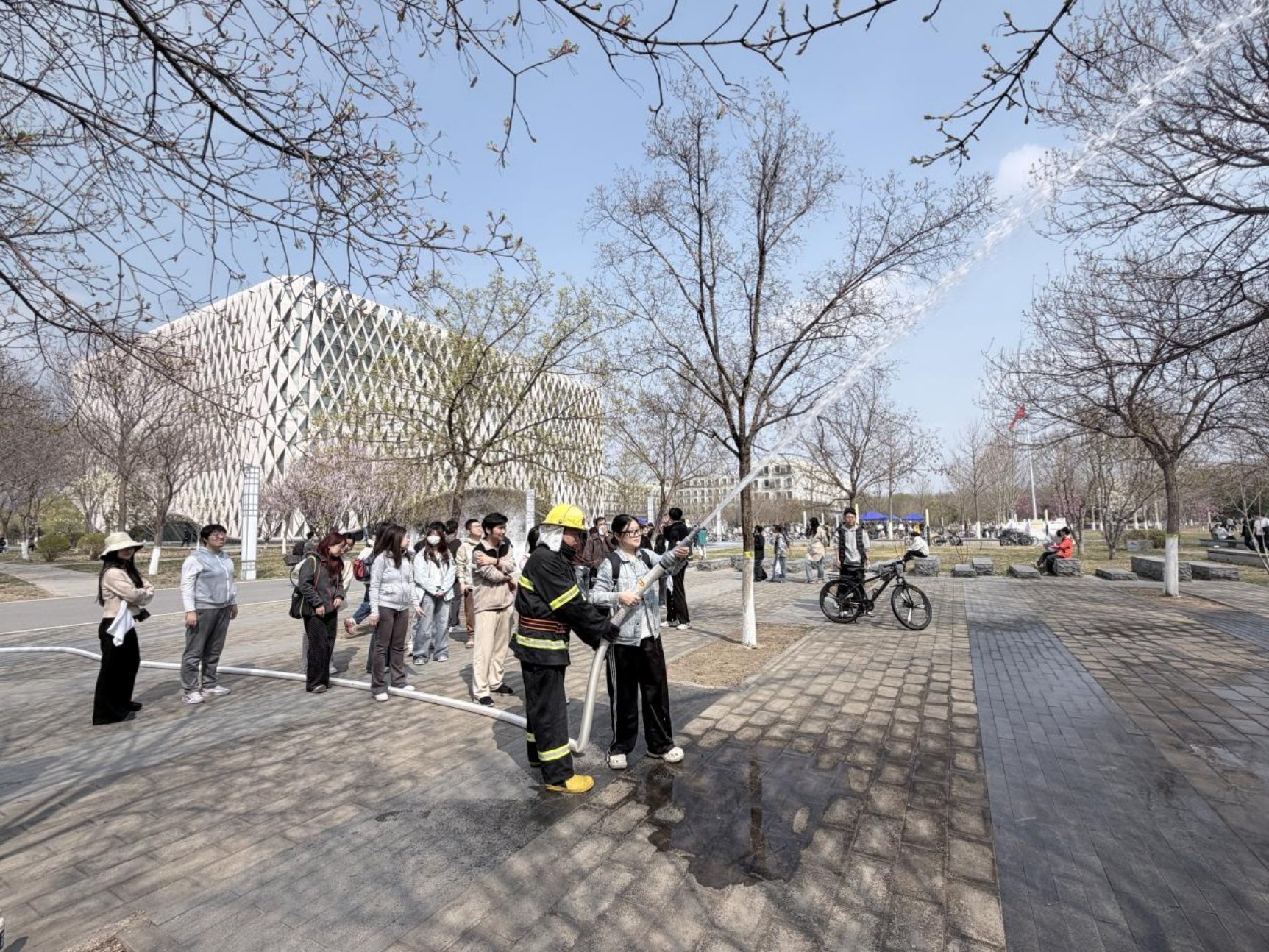 本次演练共有1000余名研一、博一学生、300余名在馆读者及图书馆全体工作人员参与。疏散演习结束后,师生有序参与了七个救援技能项目的实操演练,内容涵盖干粉灭火器灭真火、消防水龙带真出水、应急喷淋与洗眼设备使用、灭火毯灭火盆、消防战斗服与装备体验、AED体外除颤仪使用、心肺复苏术及创伤救护等环节。