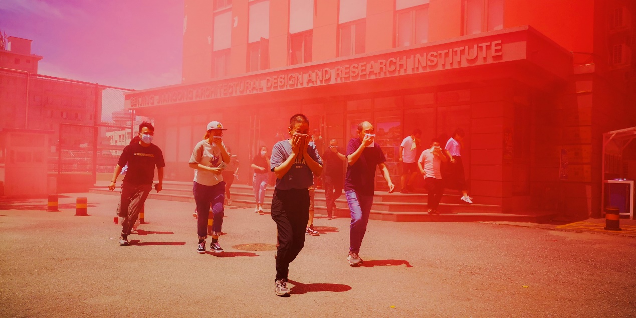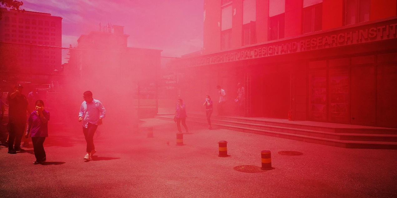 中午12时30分,西城校区消防疏散演习正式开始。演习假定学校设计院所在体育楼发生火情,学校中控室接报警后立即启动火灾应急处置预案,微型消防站队员迅即赶赴起火现场。保卫处和微型消防站队员按照火灾应急处置方案,第一时间组织楼内被困人员进行疏散,至预定安全区域集结。