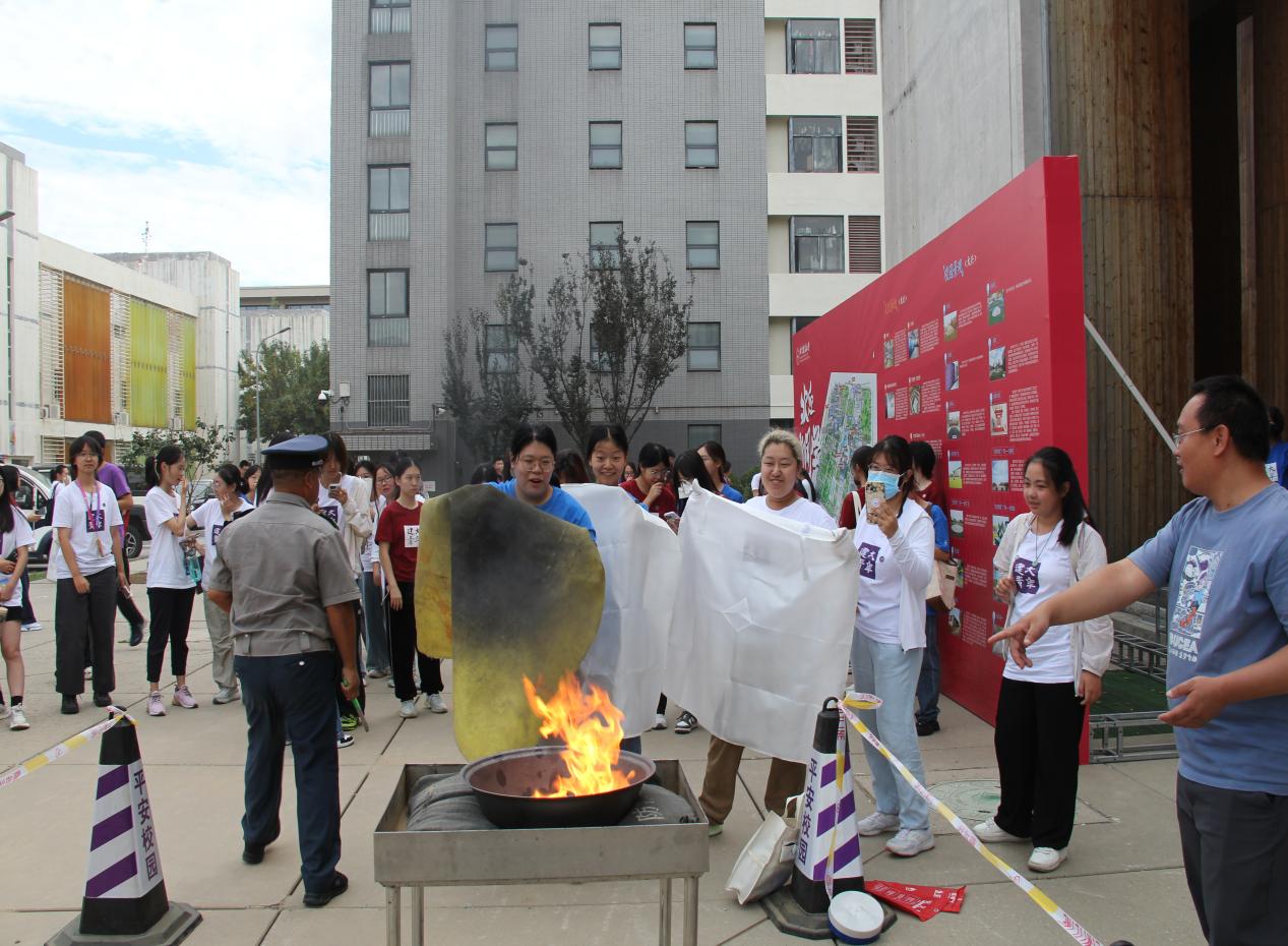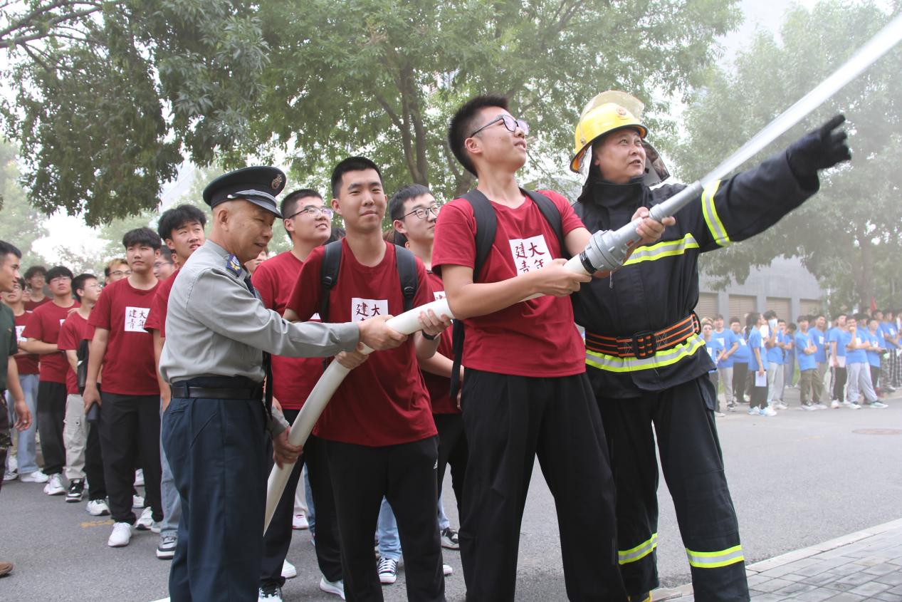 11日下午,学校组织全体本科新生开展消防技能实训,沉浸式体验不同情景下应急处置全过程。此次实训特别选址大兴校区运动场附近区域,在九个点位共设置消防水带真出水、灭火器具灭真火、灭火毯油锅灭火、水龙带拼接、消防服装试穿戴等五大实操演练项目。