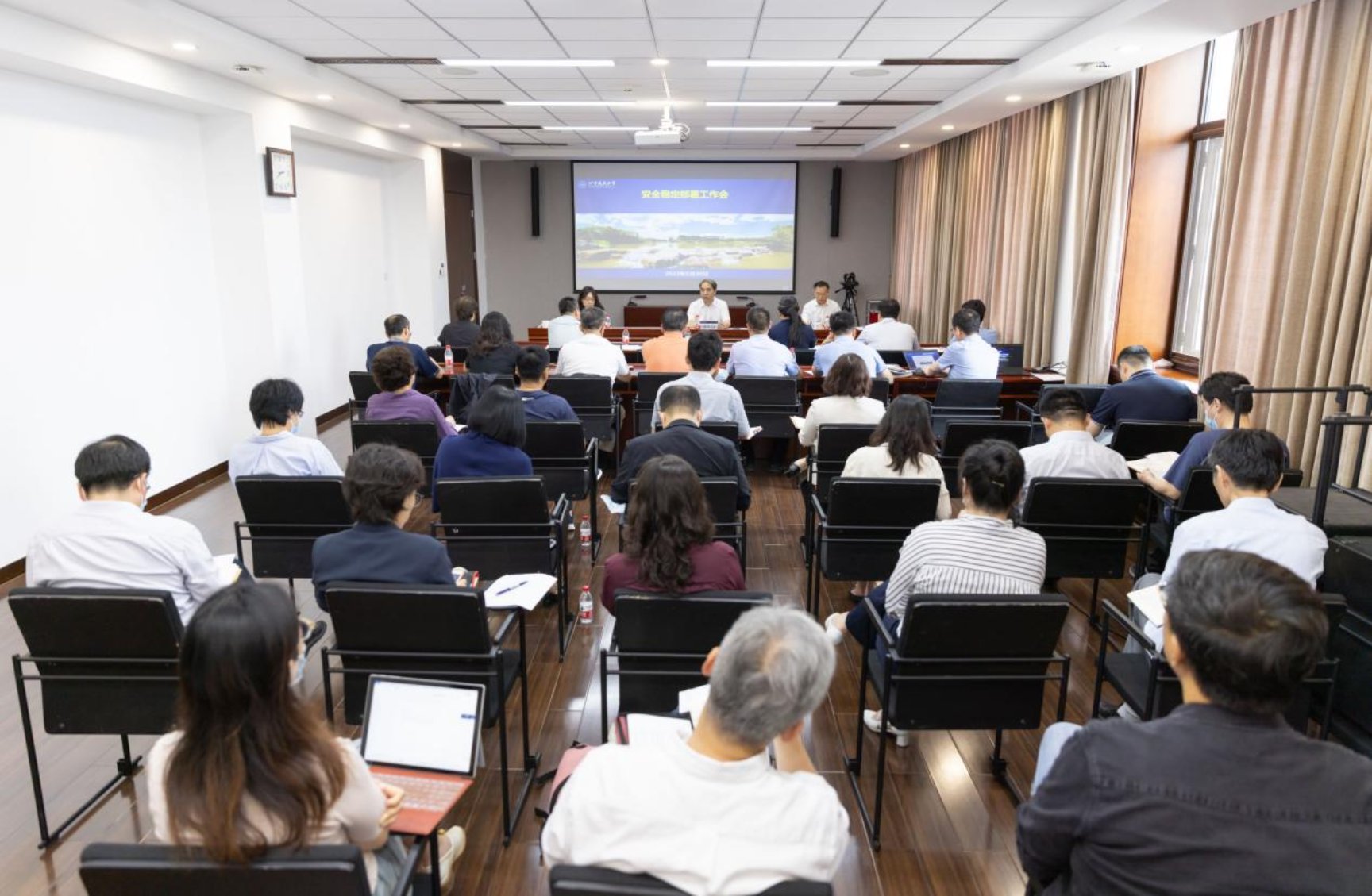 为贯彻落实党中央、市委关于安全稳定工作有关指示批示精神,传达全市教育系统安全稳定工作会议精神,对做好下一阶段校园安全稳定工作进行再强调、再动员、再部署,确保校园秩序平稳有序。5月30日下午,学校召开安全稳定部署工作会,学校党委书记李军锋、党委副书记李维平、党委常委、副校长朱静、党委常委孙冬梅、各职能部处负责人、各学院党组织负责人参加会议。会议由党委副书记李维平主持。
