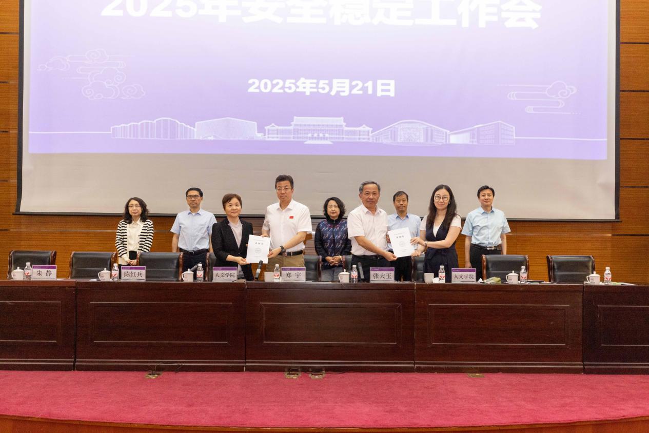 郑宇、张大玉与二级单位党政负责人代表签署2025年维护校园安全稳定工作责任书。