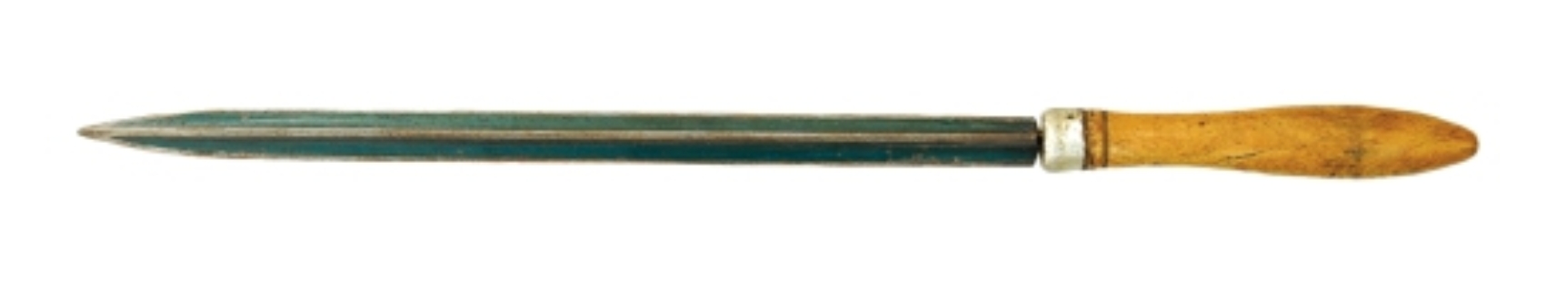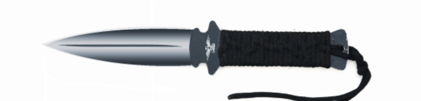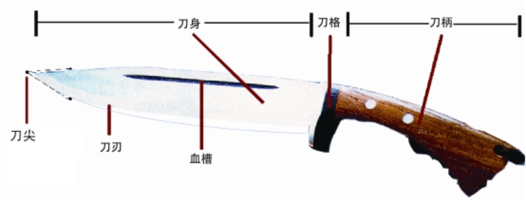 (一)匕首:带有刀柄、刀格和血槽,刀尖角度小于60度的单刃、双刃或多刃尖刀(见图一)。