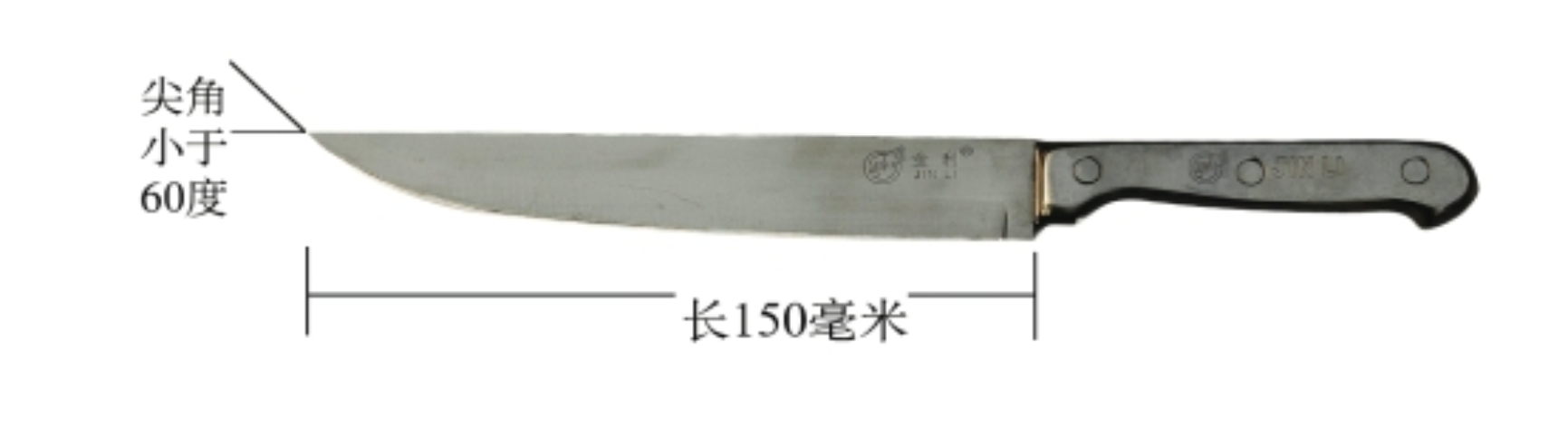 (四)其他相类似的单刃、双刃、三棱尖刀:刀尖角度小于60度,刀身长度超过150毫米的各类单刃、双刃和多刃刀具(见图四)。