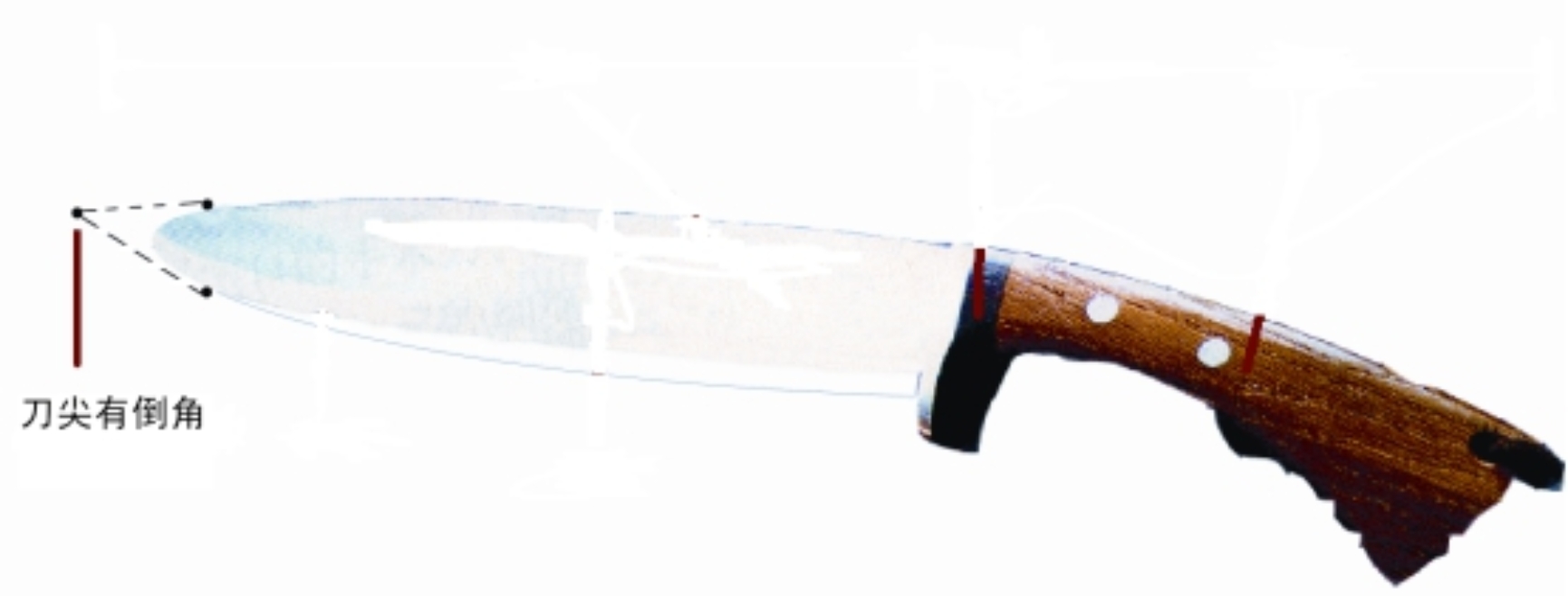 (一)匕首:带有刀柄、刀格和血槽,刀尖角度小于60度的单刃、双刃或多刃尖刀(见图一)。